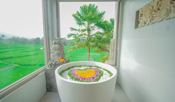 The Nenggala Suite is where you get to enjoy both authentic Balinese architecture and its majestic nature at once. Six homey suites, a crystal clear swimming pool, and a fine restaurant can be found within our home. Adorned with natural Balinese sculptures and wall decorations based on the heroism story of Ramayana. In addition, the breathtaking scenery of vast rice fields, lush tropical forest, and the grandeur of Mount Agung is truly a wonder to behold from our home.